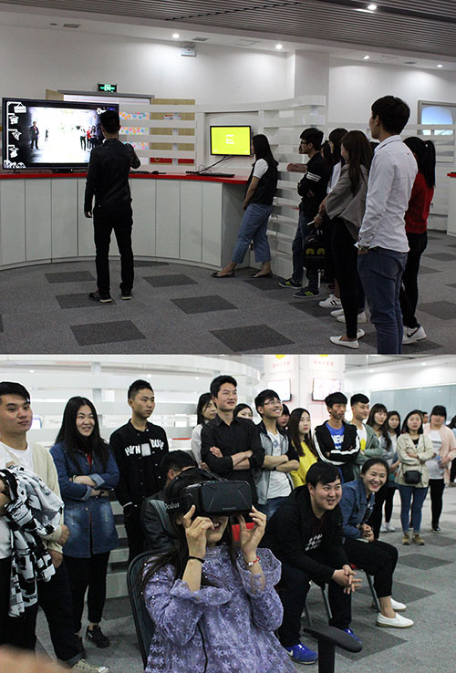 同学们纷纷体验《虚拟试衣》《过山车》项目